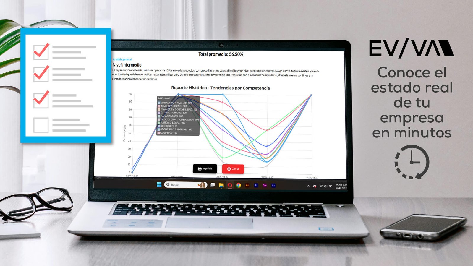 EVVA permite a empresas y consultoras evaluar, analizar y fortalecer el desempeño organizacional mediante herramientas inteligentes, personalizables y seguras.